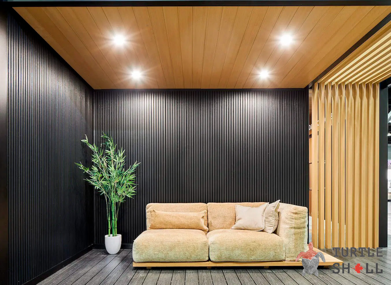 Панели Turtle Shell отличаются от обычных деревянных реек своей высокой долговечностью и устойчивостью к грибку и плесени. Они не требуют постоянной обработки лаками и антисептиками, благодаря чему обеспечивают удобство и экономию времени при уходе за ними.