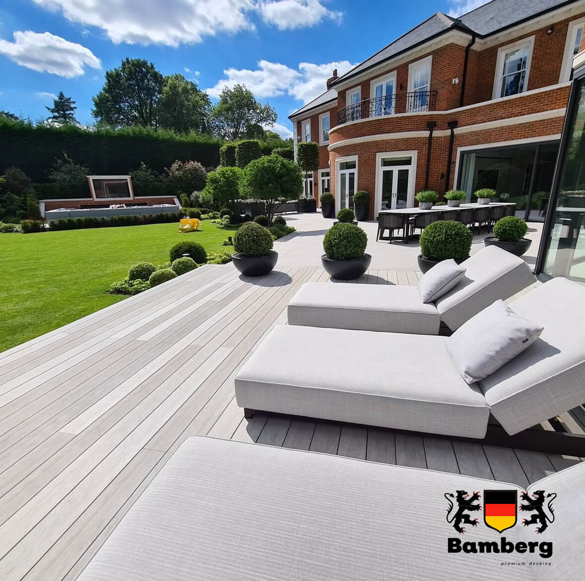 Террасная доска из ДПК от производителя Bamberg имеет все необходимые сертификаты качества и соответствует всем стандартам безопасности. При укладке данного покрытия не требуется особого опыта или специального оборудования, что делает процесс монтажа быстрым и простым.