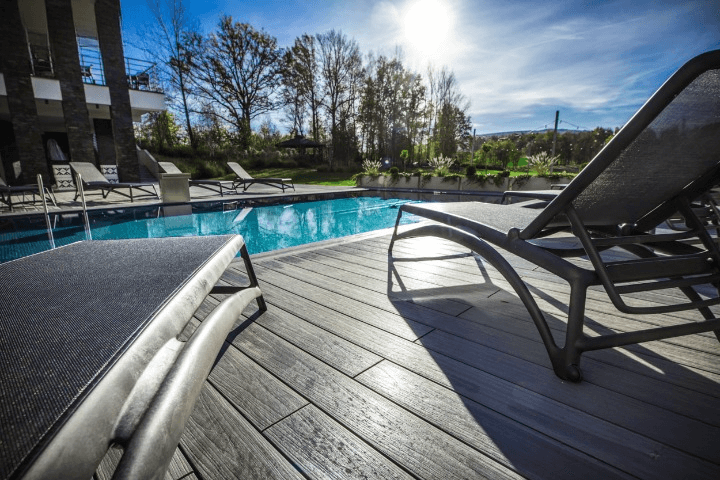Террасная доска из древесно-полимерного композита — это инновационный строительный материал, изготовленный по технологии, обеспечивающей высокую степень защиты от солнечных лучей. Под длительным воздействием УФ-лучей происходит минимальные изменения цвета.