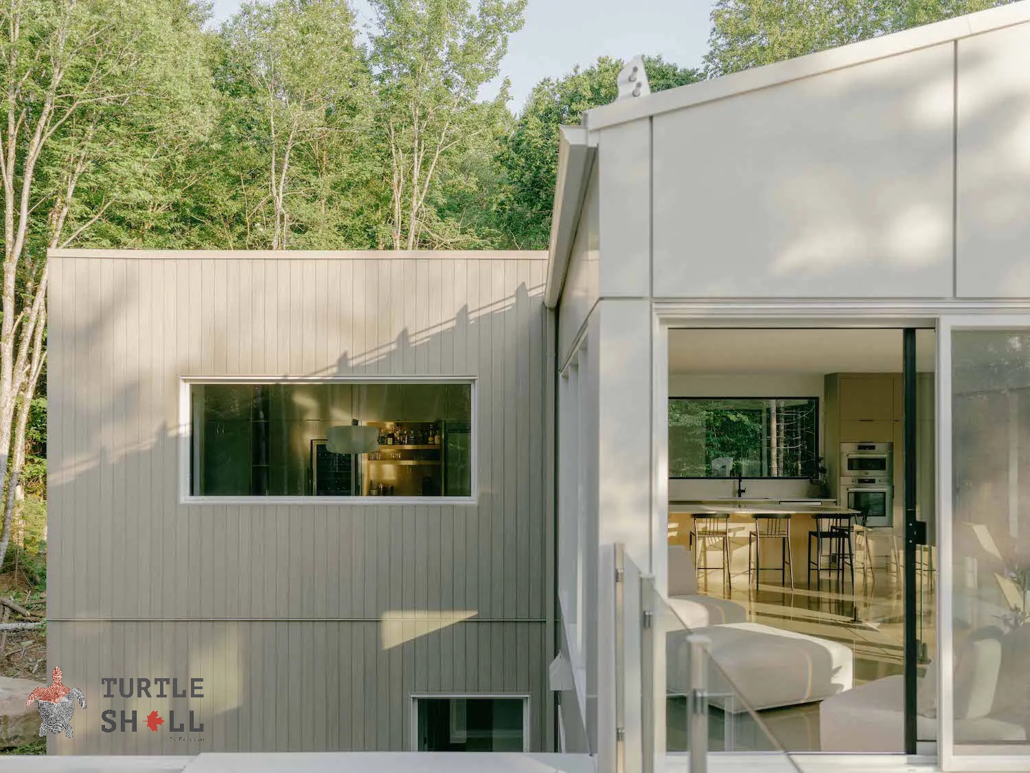 Реечные панели из ДПК Turtle Shell - 55% древесных волокон, (твердые лиственные породы дуб, ясень, клен, тополь ) 35% ПЭВП, 10% добавок, включая краситель. Толщина коэкструзии составляет 0,6 мм.