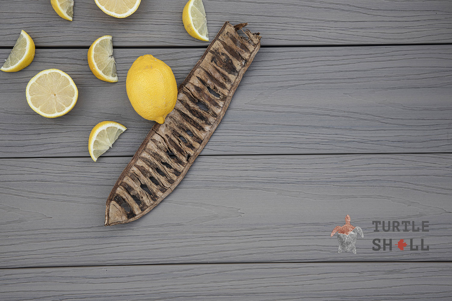 Террасная доска Turtle Shell - 55% древесного волокна, (твердые лиственные породы дуб, ясень, клен, тополь) 40% ПЭВП, 5% добавок, включая краситель.