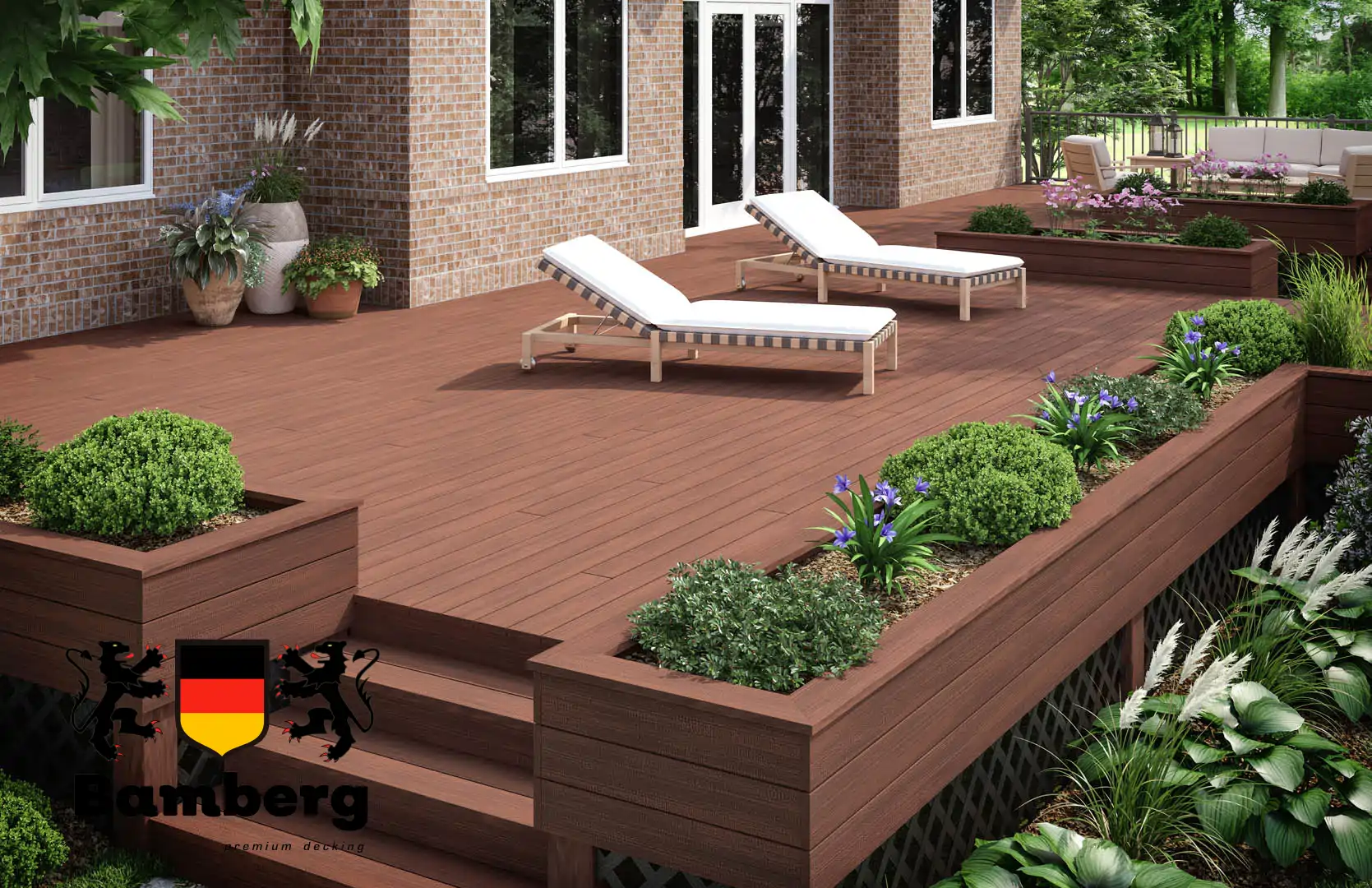 Террасная доска ДПК Bamberg Square African Bubinga имеет ряд преимуществ перед традиционными материалами, такими как дерево или камень. Во-первых, она не подвержена гниению, грибкам и насекомым, что делает ее идеальным выбором для уличных конструкций. Кроме того, она легкая и проста в монтаже, что позволяет быстро и легко создать красивое и функциональное пространство.